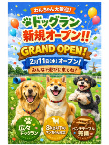 愛犬と、もっと安心して過ごせる場所を。初めての方や小型犬でも安心してご利用いただけるドッグランが、まもなくグランドオープンします。安全管理とマナーを大切にし、飼い主さまも愛犬も心地よく過ごせる空間を目指しました。 ご予約 […]